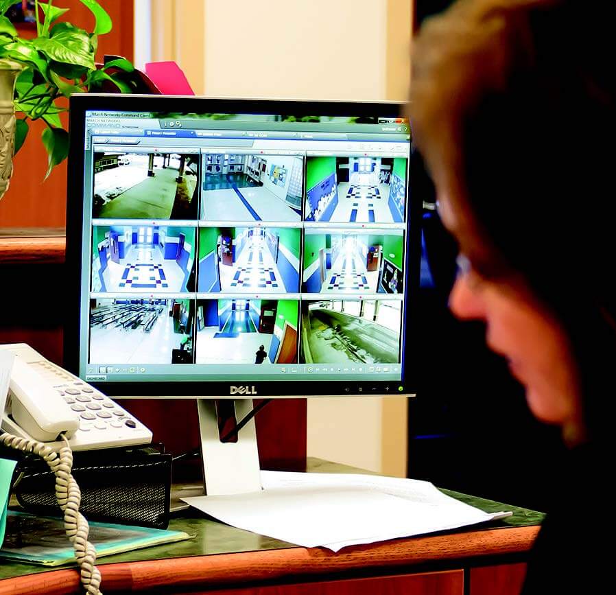 “In our district, all of the administra-tors — principals, vice-principals and even secretaries — have access to the system,” said Millsap. “The secretaries are able to view live video on a monitor while they’re sitting at their desk. They are able to switch between several pre-configured groups of cameras depending on the area in or around the exterior of the school they want to see.”