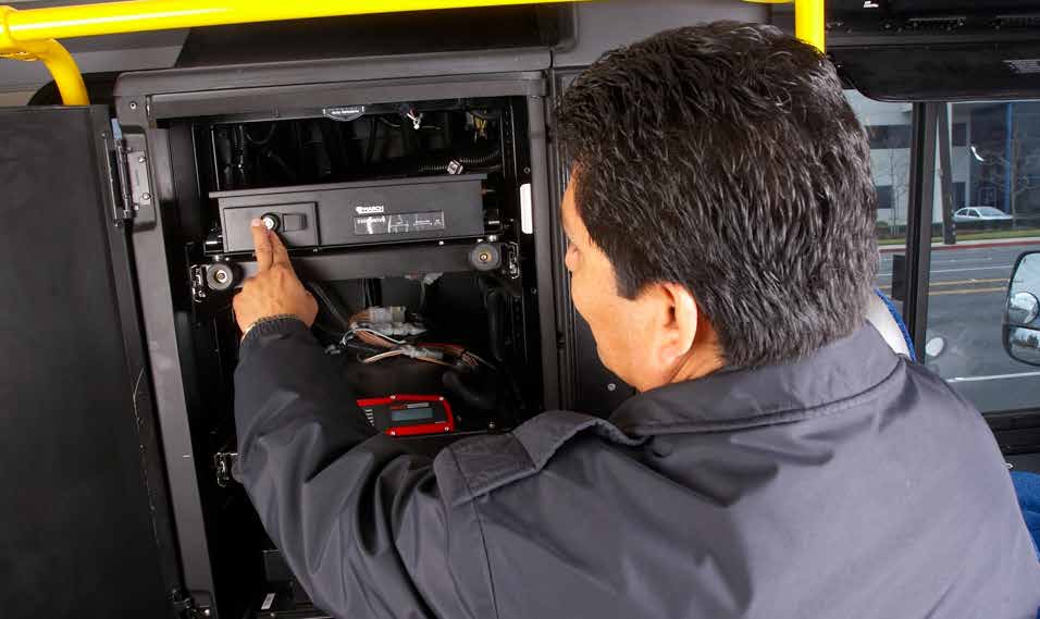 Two microphones — one located at the front of the vehicle, the other in the wheelchair securement area near the back door — capture audio to provide transit management with a more complete record of any incident.